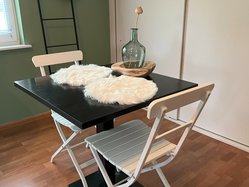 Buiten vind je een picknicktafel op het terras waar je in het zonnetje kunt eten met wederom prachtig uitzicht.