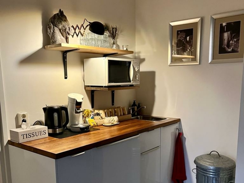 Wanneer je kiest voor een verblijf bij TAKT heb je toegang tot een royale hal met een handige kitchenette, voorzien van een koelkast, magnetron, waterkoker, Senseo, borden, glazen en bestek. Koffie en thee zijn onbeperkt beschikbaar. Je hebt de keuze uit een kamer op de eerste verdieping of beneden in het souterrain. Boven wachten sfeervolle kamers op je, variërend van zeer ruim tot iets knusser. De grote kamer heeft een ensuite luxe badkamer met toilet, wastafel en een heerlijke douche. Voor de gasten van de kleinere kamer is deze badkamer ook bereikbaar vanuit de gang.